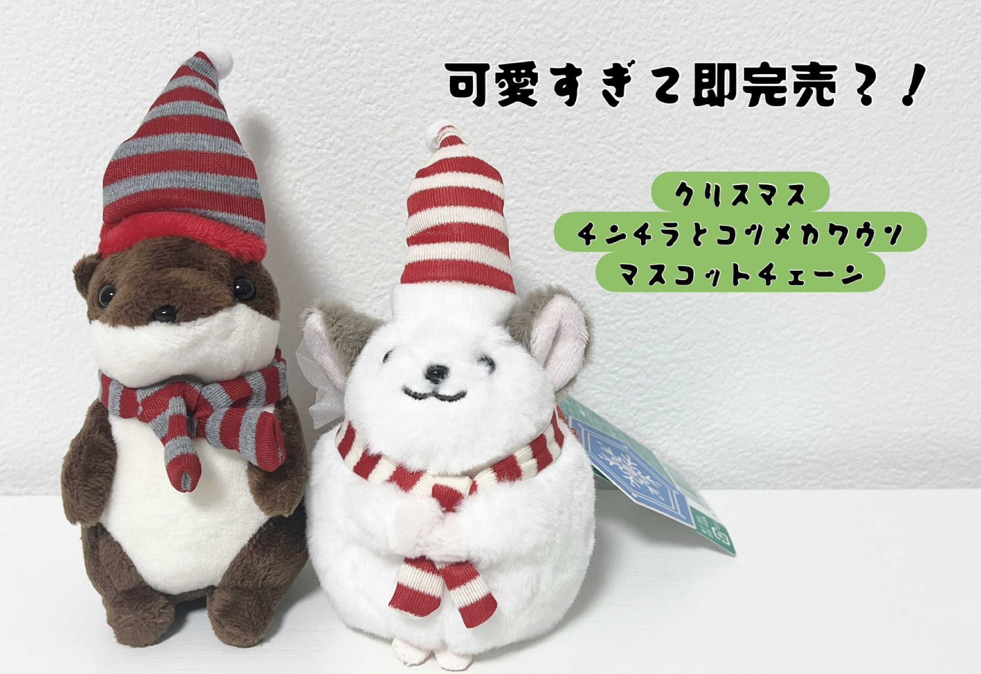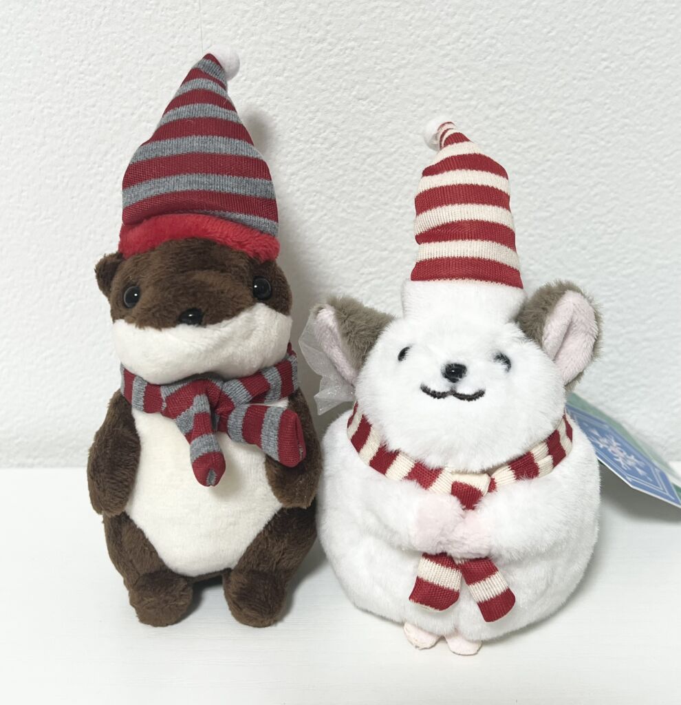 クリスマス仕様のチンチラとコツメカワウソのぬいぐるみ🎄✨