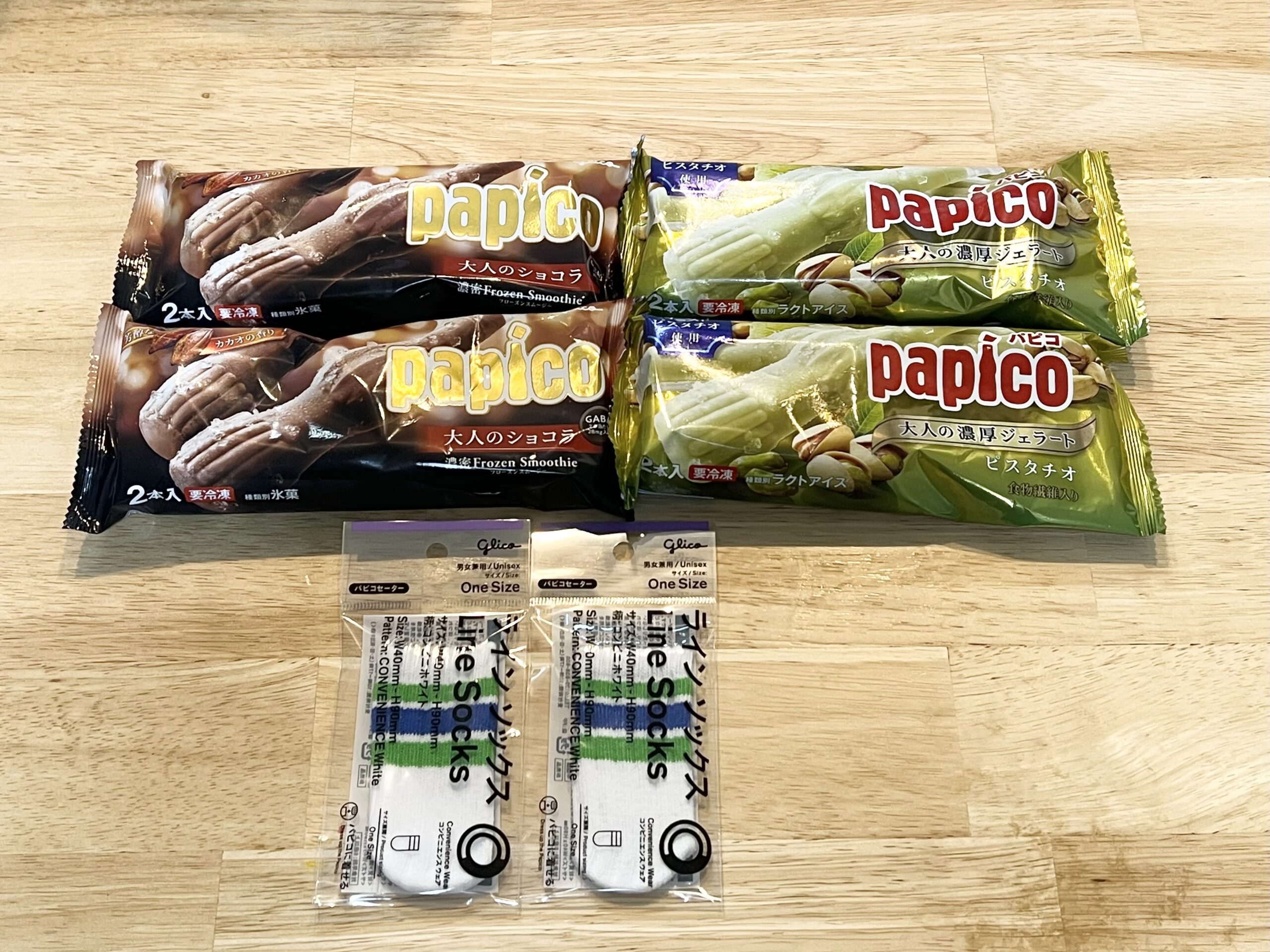 ファミマ靴下柄のパピコセーターは数量限定みたいなので、欲しい方は無くなる前にファミマへ💨